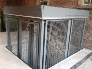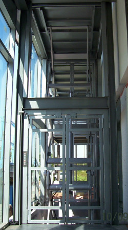 ![]() Hoch hinaus wollte ein Autohaus, zum Transport von Motorrädern über drei Geschossebenen. Der Hub beträgt gesamt 5800 mm |