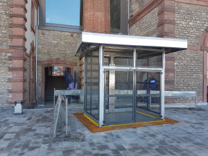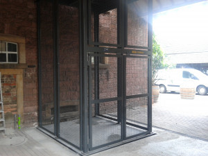 ![]() Hebebühne mit 3 gegenüberliegenden Haltestelle mit entsprechend verriegelten Türen. |