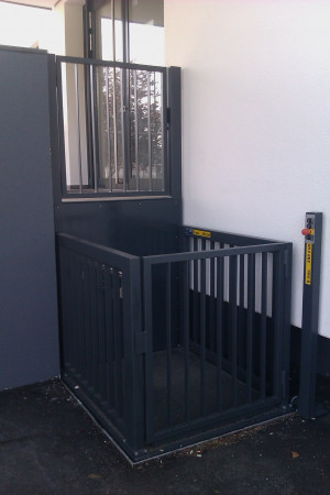 ![]() Serienhebebühne, modifiziert zum Aktentransport in einem staatlichen Hochbauamt. |
