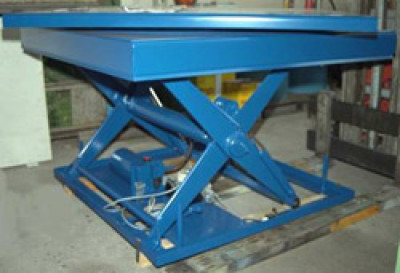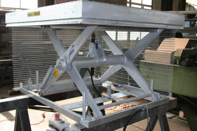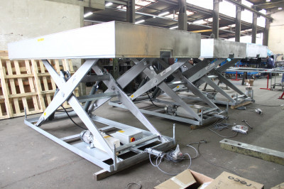 ![]() Diese Serienhebebühne ist bestimmt für den Einsatz vor einer Blechverarbeitungsmaschine |