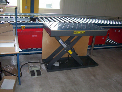 ![]() Höhenverstellbare Handlingshilfe mit manueller Kugelrollenbahn in der Produktion. |