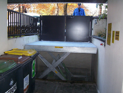![]() Hebebühne, Ver- und Entsorgung beispielsweise bei Müllräumen im Untergeschoss in Privat- und Gewerbebauten. |