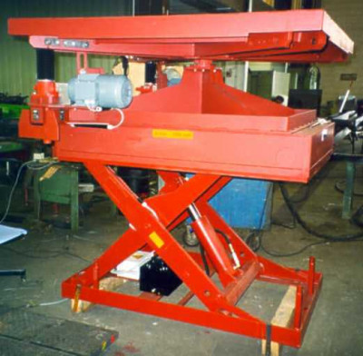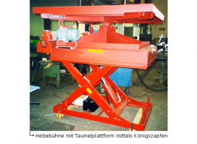 ![]() Hebebühne mit Taumelplattform mittels Königszapfen. |