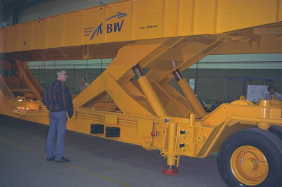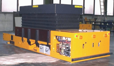 ![]() Mobiles Fahrzeug zum Transport von Rumpfteilen in der Flugzeugindustrie. |