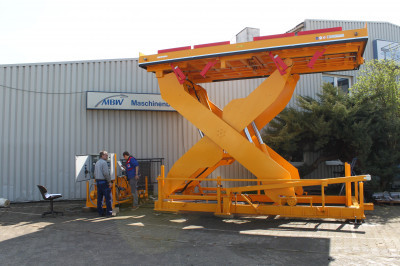 ![]() Schwerlast-Hebebühne mit klappbarer Auflagerverriegelung. |