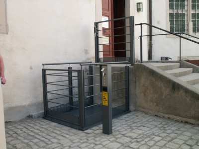 ![]() Hebebühnen mit Sonderausstattung zum Verfahren gehandicapter Personen im öffentlich zugänglichen Bereich. |